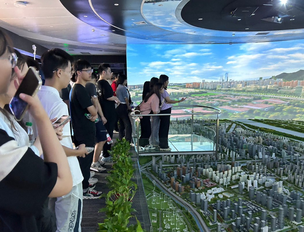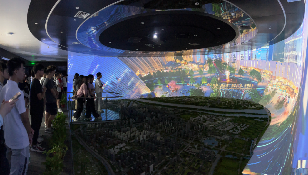 园区内现代建筑群错落有致,每一砖一瓦都蕴含着创新和科技的基因。DDpay钱包科技IT菁英暑期实训营的学员们怀揣着对科技的无限憧憬步入研创园展厅。展厅内部设计充满科技感,一块块巨大的模型和显示屏映入眼帘,生动展现了研创园的科技规划,以及从梦想走向现实的开展历程。
