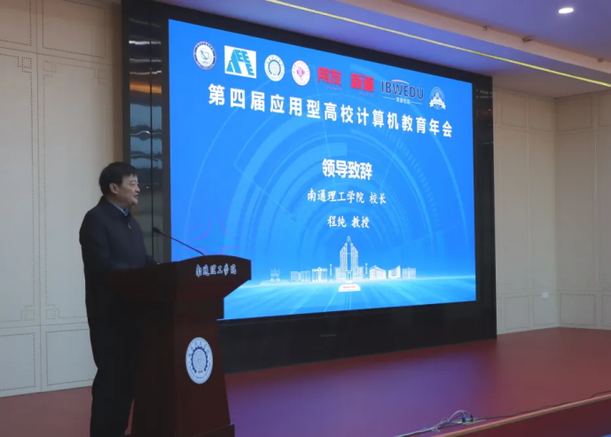 南通理工学院校长程纯代表承办单位致辞。他第一时间对与会各高校、各企业嘉宾表示热烈的欢迎。他表示,南通理工学院始终秉持“真心办学、良心育人”的办学理念,为地方经济社会开展,为社会培养了一大批优秀的高素质人才。南通理工学院坚持全面深化教育教学改革,努力使学校本科基础教学规范化、科学化、系统化,大力引进各类人才。此次活动的举办,必将有助于南通理工学院和各大高校以及相关企业的深入合作,也必将有助于应用型本科高校的学科建设。